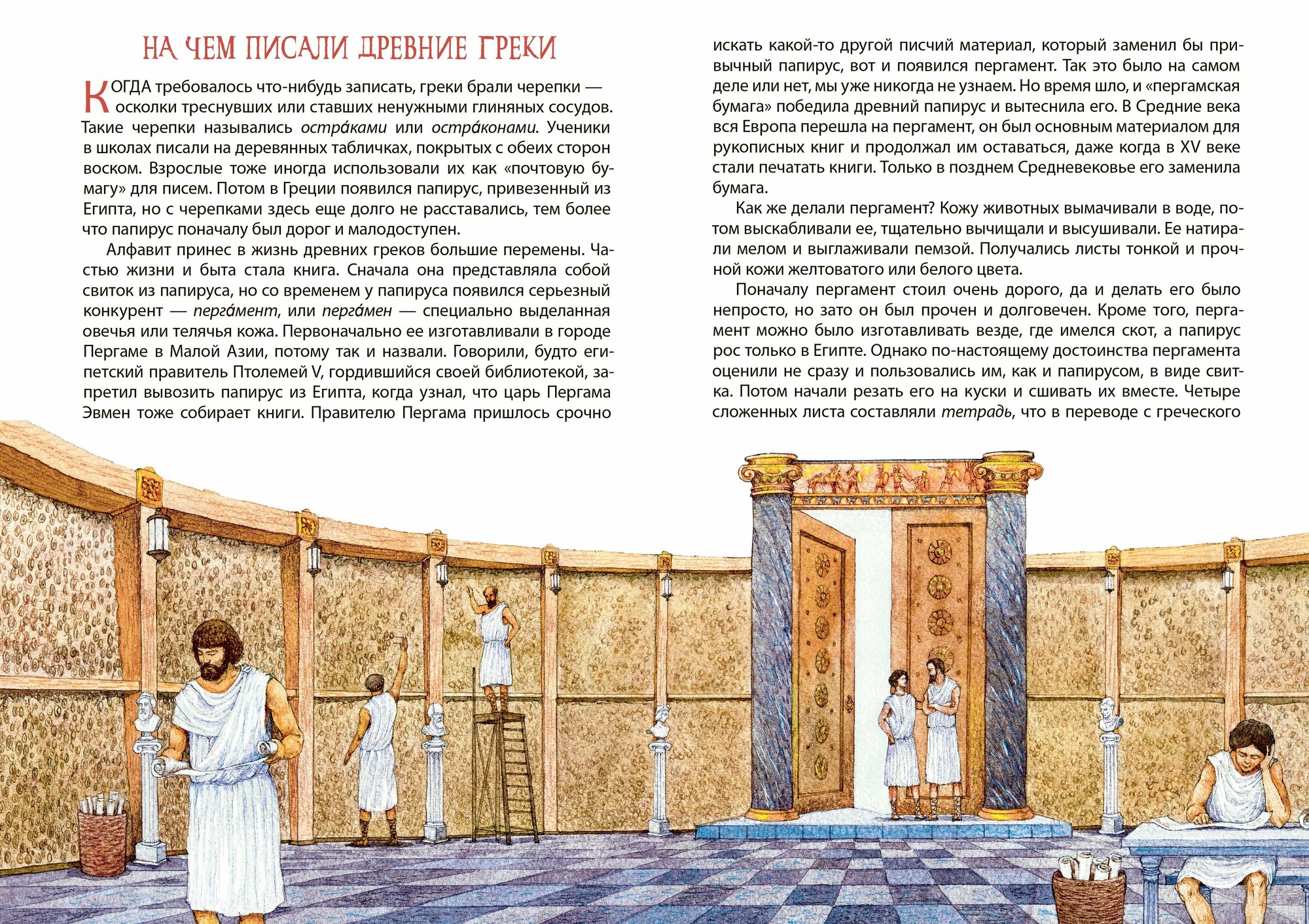 Книга с замечательными иллюстрациями, аккуратная и красочная. Над трудными словами проставлены ударения, шрифт крупнее среднего. Рассказывается история письма от древнего Египта до возникновения современной кириллицы. Изложено понятно и интересно. Отпечатано в России, в Ярославле.