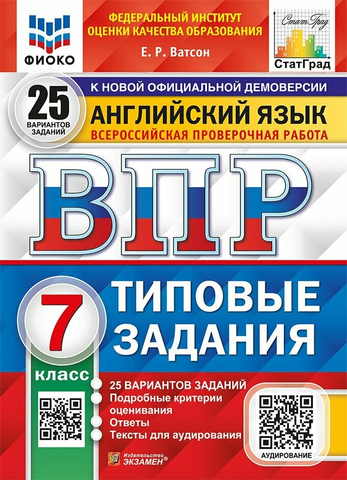 ВПР ЦПМ Английский язык. 7 класс. 25 вариантов. Типовые задания. (Елена Рафаэлевна Ватсон); Экзамен, 2021