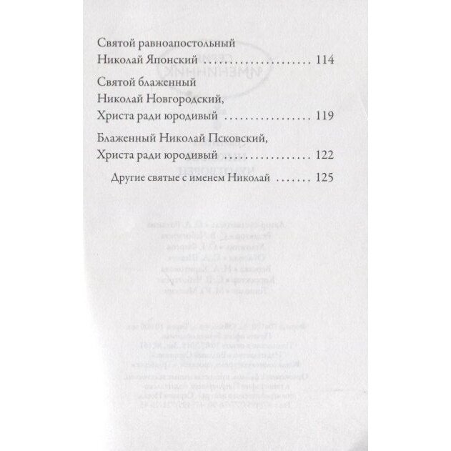 Эта книга о святом Николае Чудотворце станет прекрасным подарком тем, кто носит имя Николай и для кого он является небесным покровителем. Вы совершите путешествие в город Бари, где в базилике покоятся мощи святителя Николая, а также познакомитесь с другими подвижниками православия: святителем Николаем Сербским, равноапостольным Николаем Японским, блаженными - Николаем Псковским и Николаем Новгородским, старцем Николаем Гурьяновым.