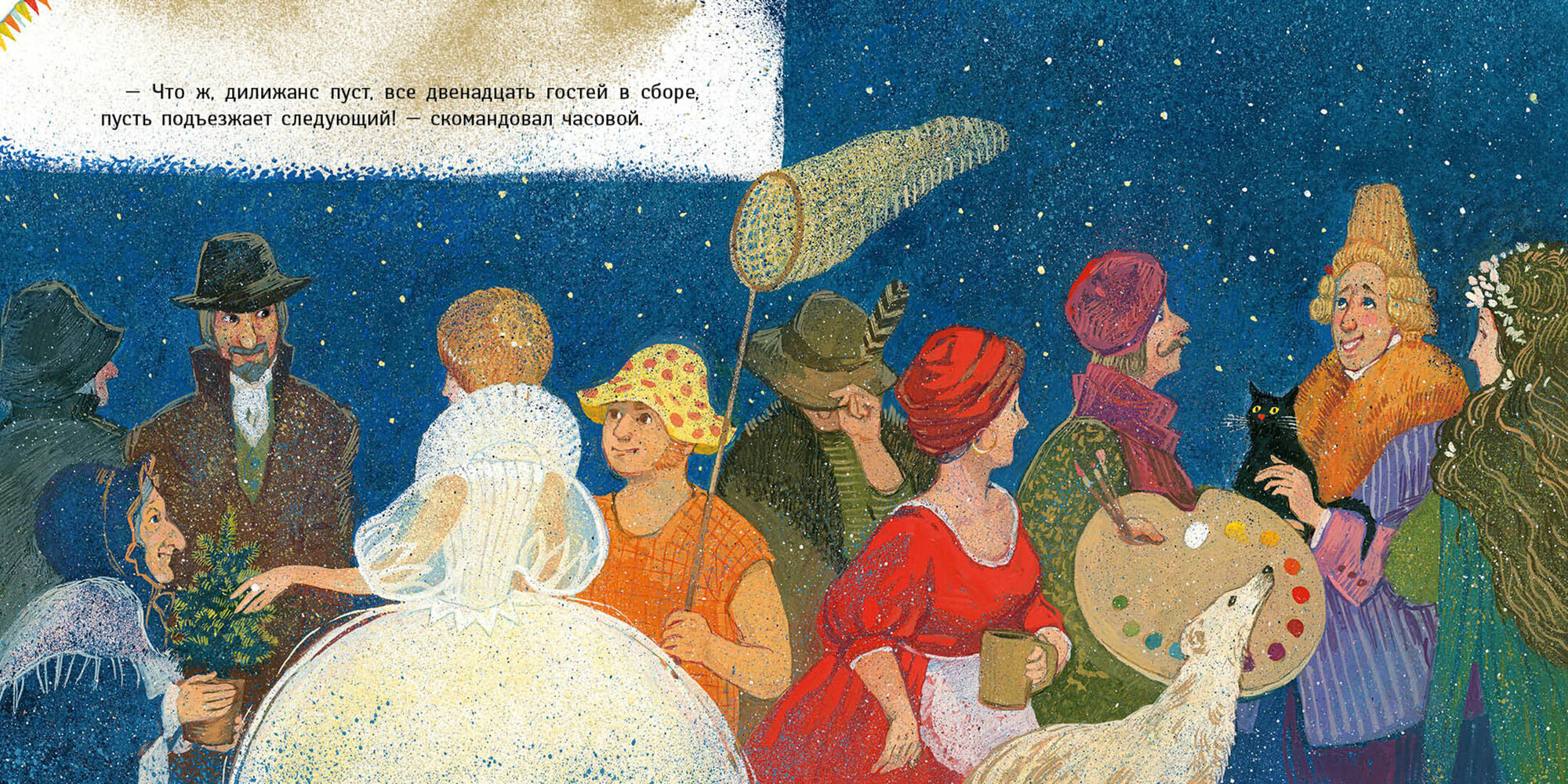 Художник Анна Хопта очень живо и красочно изобразила всех пассажиров необычного дилижанса. Каждому месяцу в книге отведён свой разворот. С иллюстрациями Анны в издательстве "Нигма" вышли книги "Алмаз Раджи", "Золотой жук", "Капитан Фракасс" и "Шевалье д'Арманталь".