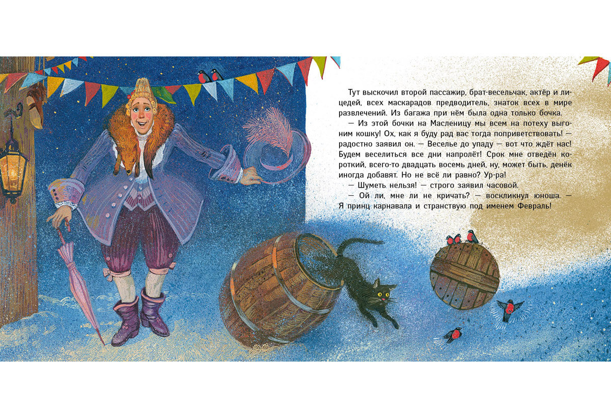 Очень понравилось рассматривать иллюстрациии. Октябрь похож на Вениамина Смехова! Яркие, красивые - прямо как кадры из мультфильма. Я бы посмотрела такой.