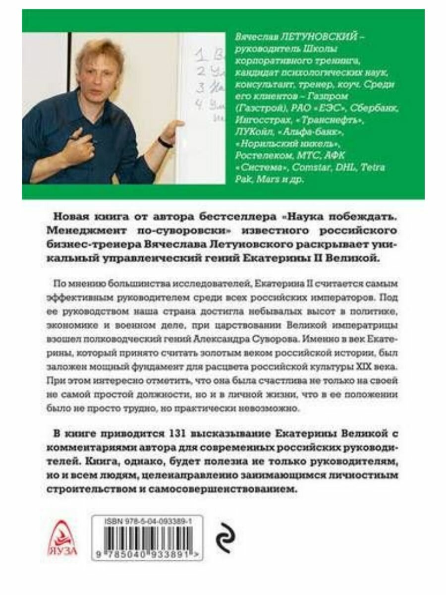 Новая книга от автора бестселлера "Наука побеждать. Менеджмент по-Суворовски" известного российского бизнес-тренера Вячеслава Летуновского раскрывает уникальный управленческий гений Екатерины II Великой.