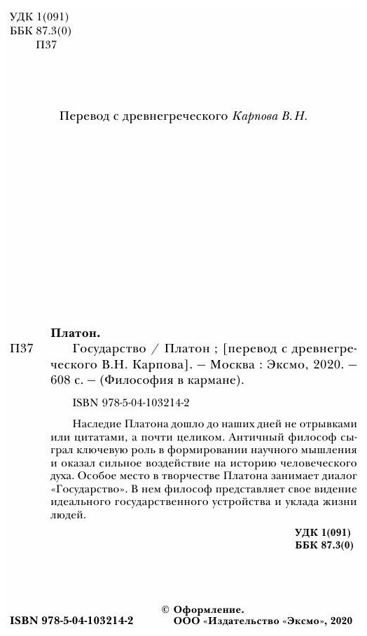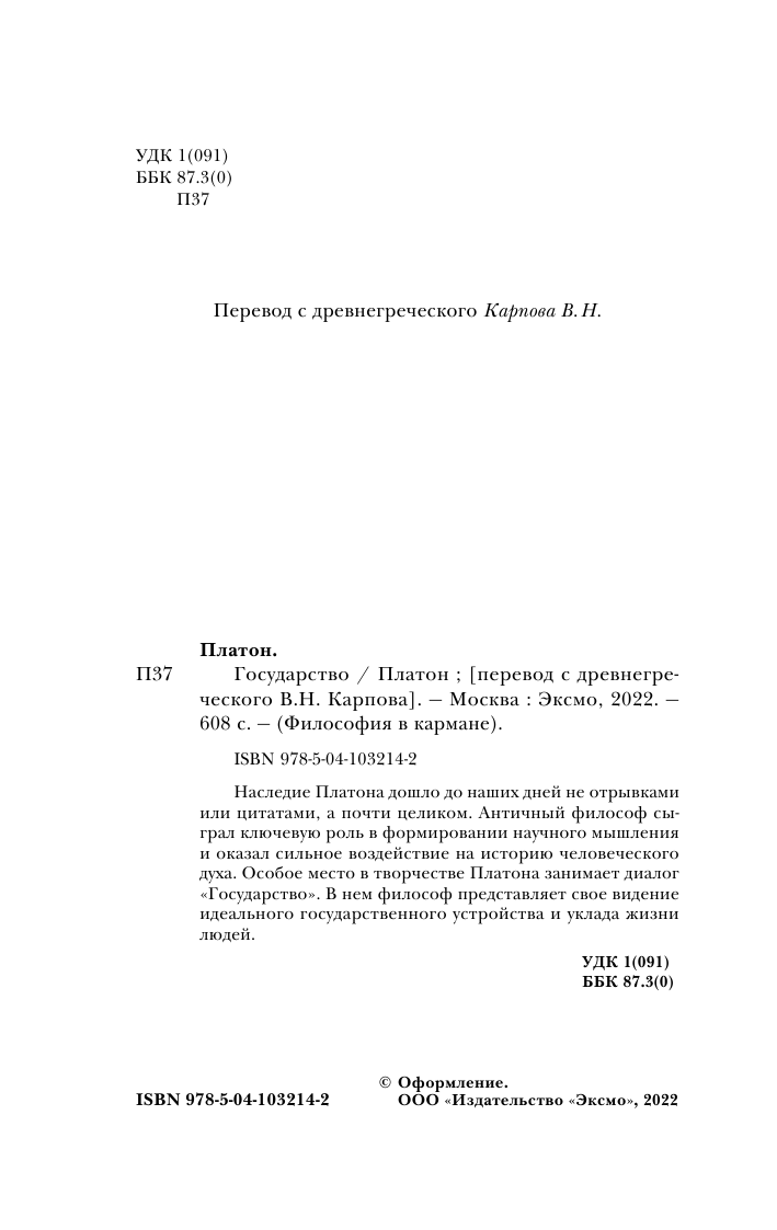 Книга: Государство (Платон); ООО "Издательство "Эксмо", 2019