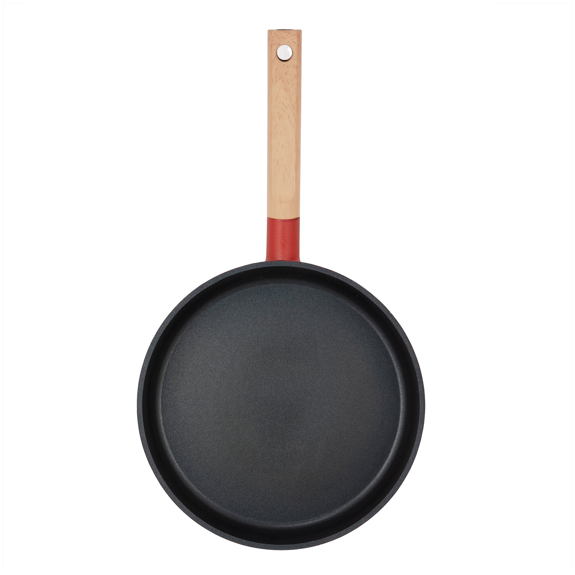 Самая любимая сковорода, хочу обязательно купить и в большем диаметре. Дизайн у этой фирмы всегда сильная сторона - очень красивое сочетание красного и светлого дерева, хотя конечно это никакое не дерево. Ручка не нагревается кстати. Сковорода у меня в активном пользовании, готовлю на ней ВСЕ: от блинчиков и омлетов, до мяса и рагу. Получается прекрасная аппетитная корочка, я сейчас в процессе похудения, поэтому возможность готовить без масла очень выручает.