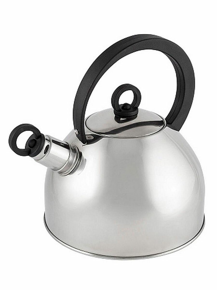 Чайник из нержавеющей стали со свистком. Объем - 2,2 литра. Толщина - 0,3 мм Материалы: нерж сталь, бакелит. Зеркальная полировка корпуса. Капсулированное дно. Со свистком Подходит для всех типов плит. Не рекомендуется мыть в посудомоечной машине. Упаковка: инд цветная коробка.