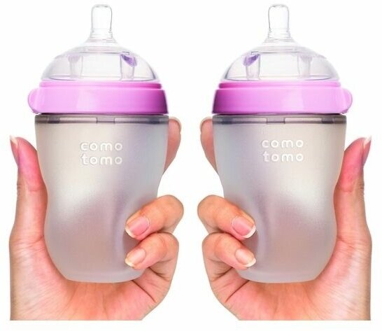 Набор бутылочек Comotomo для кормления 250мл зеленый 250TG-EN - Силиконовая бутылочка с антиколиковым клапаном для кормления малыша - В комплекте 2 бутылочки - Для малышей от 3 до 6 месяцев: в комплекте соска со средним потоком (2 отверстия) - Приятная на ощупь - Нескользкая поверхность - Её невозможно разбить - Напоминает малышу мамину грудь - Отсутствуют окрашенные элементы - 100% безопасная и экологически чистая Набор из 2 бутылочек для кормления Comotomo Natural Feel Baby Bottle 250 мл Естественная форма! Благодаря уникальной форме Comotomo полностью имитирует грудное вскармливание. Физиологичная форма соски и материал, из которого изготовлена бутылочка, максимально напоминают ощущения маминой груди и позволяют младенцам легко переходить от грудного вскармливания к бутылочке и обратно без рисков отказа от груди. Младенцы обладают повышенной тактильной чувствительностью, поэтому при выборе материала производители опирались на ощущение «маминой» заботы. Бутылочки Comotomo сделаны из безопасного медицинского силикона. Этот материал не имеет вкуса и запаха, не красится, не вызывает аллергии, а еще он мягкий и нежный, как мамина кожа. В то же время медицинский силикон — очень прочный и пластичный материал, а значит, ребенок не сможет разбить, раскусить или разорвать бутылочку. Мыть стало удобнее Благодаря широкому горлышку бутылочку Comotomo удобно мыть руками, без использования специальных щеток. Больше никаких дополнительных расходов и лишних предметов у вас дома. Специальная система против колик Двойные вентиляционные отверстия препятствуют возникновению колик и обеспечивают стабильное и непрерывное поступление молока.