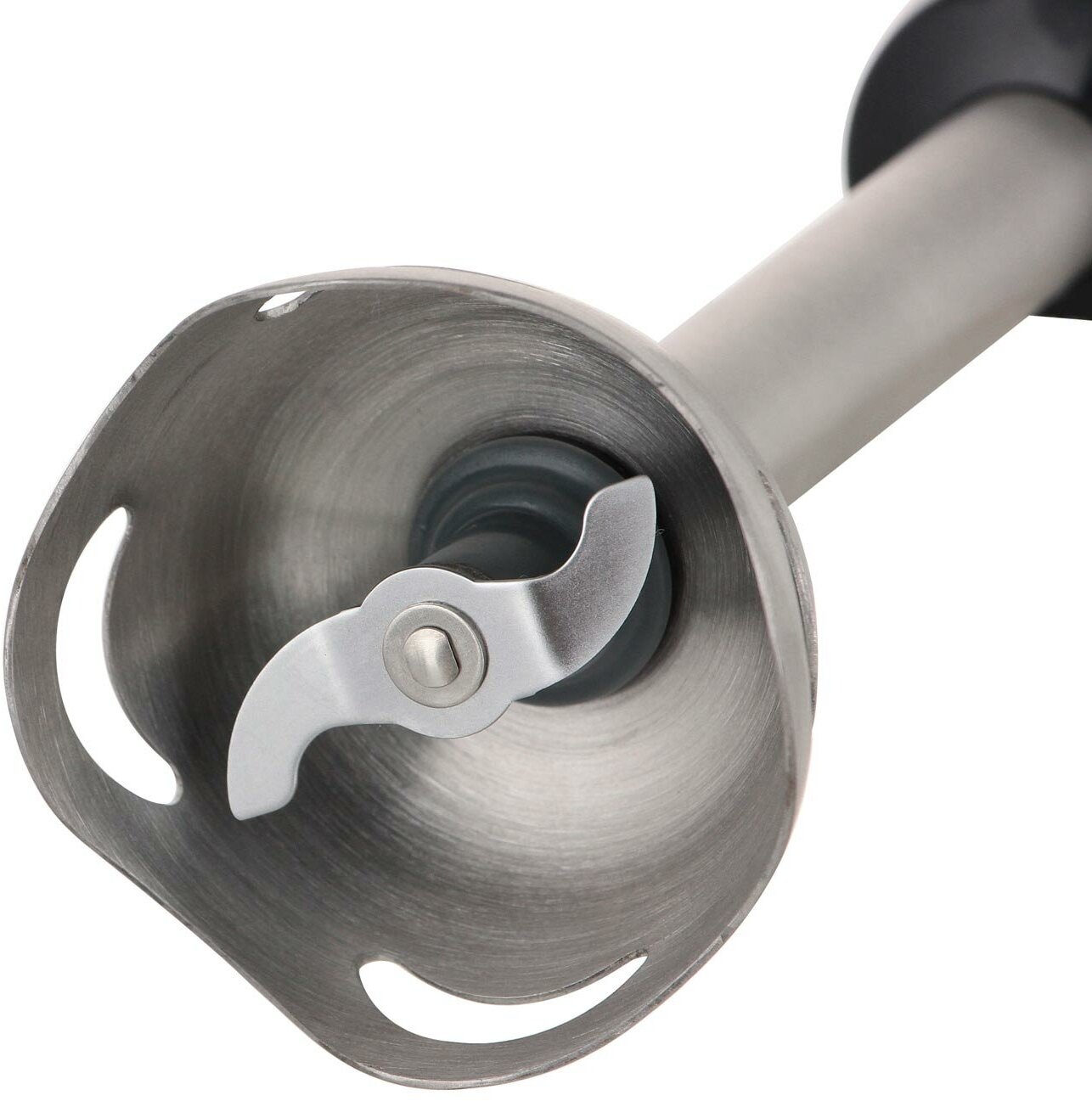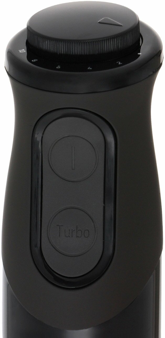 | Прочие свойства и особенности | Погружной домашний блендер, оснащенный мотором, мощностью 800 Вт и 10 скоростными режимами, c возможностью переключения во время измельчения.,В комплект входят:удобный мерный стакан, объемом 800 мл, измельчитель для различных ингредиентов, объемом 500 мл, а также венчик для блендера.,Можно мыть в посудомоечной машине. |