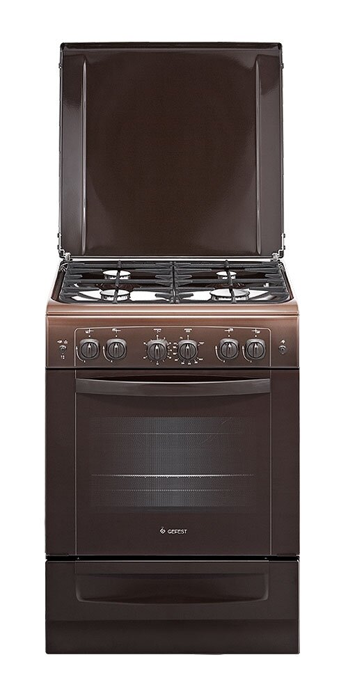 GEFEST - это газовая плита в коричневом цвете с эмалированной варочной поверхностью. Газовый контроль духовки, электрический розжиг горелок и духовки с кнопками розжига на панели, а также встроенная газовая гриль-горелка - вот главные достоинства данной модели.