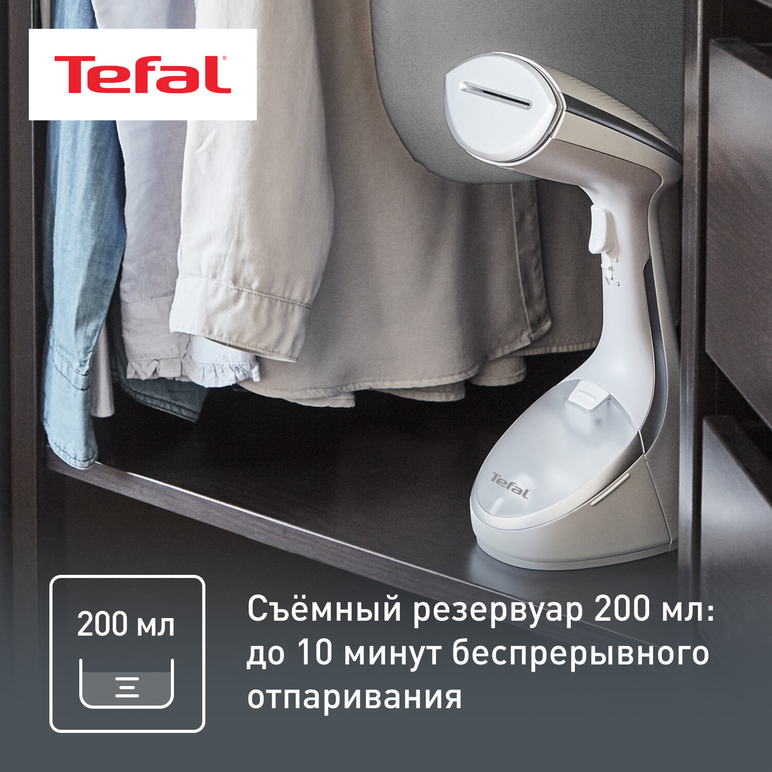 Ручной отпариватель Tefal создает мощный пар для тщательного ухода за вашими вещами.Попробуйте удобный и комфортный метод тщательного отпаривания и разглаживания без использования обычной гладильной доски и утюга. Мощный пар в ваших руках – постоянная подача пара до 30 г/мин для разглаживания любых складок даже на плотных тканях. Инновационная технология нагреваемой подошвы не создает конденсата, значит ваши вещи будут идеально гладкими и чистыми – их можно надевать сразу после отпаривания. Освежите вещи перед выходом или тщательно разгладьте все складки на обычной вешалке - паровой генератор справится с любой задачей и безопасен для любых тканей в вашем гардеробе, даже самых деликатных, таких как шелк. Используйте отпариватель для штор и тюля, когда вам нужно быстро разгладить одежду перед выходом или сразу весь гардероб. Он нагревается всего за 40 секунд и может справиться с любыми типами тканей.Бытовой отпариватель для дома имеет три уровня мощности пара, позволяющие эффективно заботиться о широком спектре тканей – от самых деликатных до плотных. Устройство Тефаль имеет удобный дизайн для ежедневного использования: шнур электропитания длиной 3 метра, триггер для постоянной подачи пара, удобно расположенную кнопку включения/выключения с индикатором и съемный резервуар для воды. В комплект входят полезные аксессуары, включающие щетку для плотных тканей, насадку для деликатных тканей, насадку для создания стрелок, крючок для двери, позволяющий отпаривать одежду в удобном месте, насадка для удаления шерсти и пыли, чехол для хранения и вертикальная поддержка для эффективного разглаживания. Мощный пар уничтожает до 99.9% бактерий, эффективно освежает белье и устраняет неприятные запахи.Ручной отпариватель Access Steam Care от Tefal идеально освежит вашу одежду перед выходом или тщательно разгладит все складки!