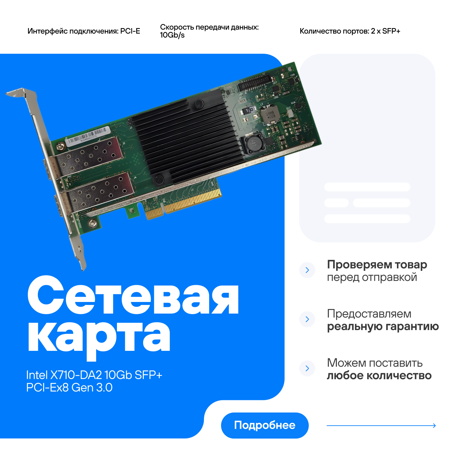 | Тип товара | Сетевая карта |