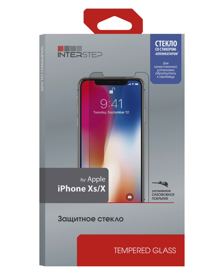 Защитное стекло для iPhone InterStep глянцевое 0,3мм для iPhone Xs/X c аппл.