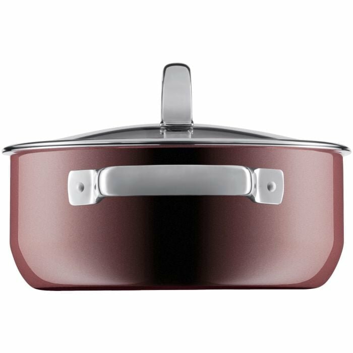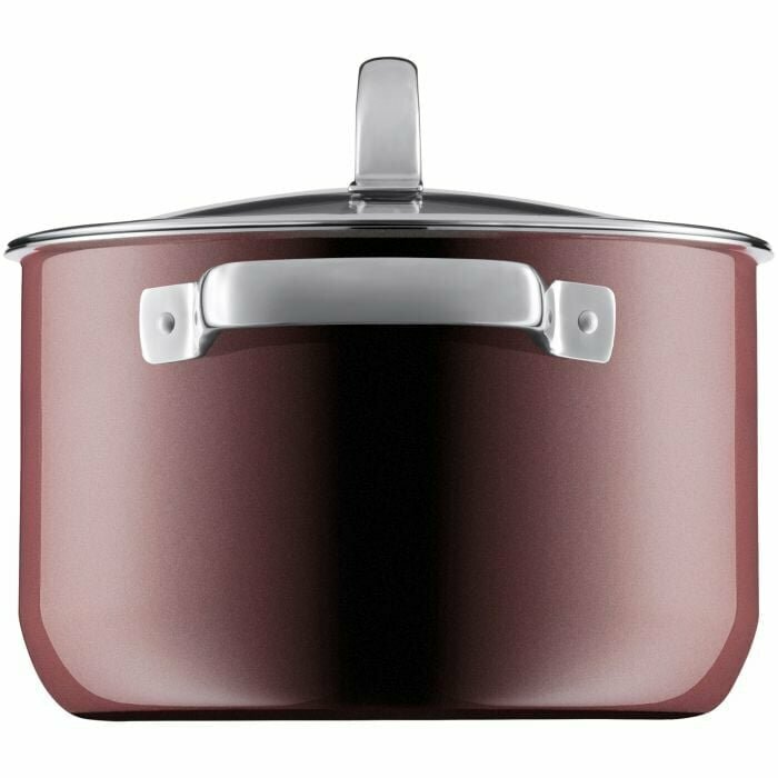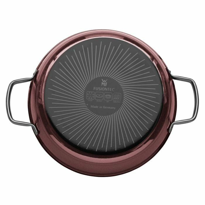 Кухонная посуда Fusiontec Mineral выполнена из материала Fusiontec, получаемого в результате соединения нержавеющей стали, железа и природных минералов, нанесенных в несколько слоев с использованием обжига при чрезвычайно высоких температурах. Такое сочетание наделяет материал хорошей теплопроводностью для равномерного нагрева по всей поверхности посуды. Исключительно гладкая поверхность с металлическим эффектом на внешней стороне одновременно очень твердая, устойчивая к царапинам и износу и сохраняет привлекательный вид на протяжении многих лет. Ручки посуды полые, поэтому они не нагреваются во время готовки. Широкий край позволяет сливать жидкости без брызг и капель. Стеклянная крышка дополнена стальным ободком и ручкой.