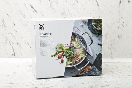 Кастрюля Fusiontec Mineral выполнена из материала Fusiontec, получаемого в результате соединения нержавеющей стали, железа и природных минералов, нанесенных в несколько слоев с использованием обжига при чрезвычайно высоких температурах. Такое сочетание наделяет материал хорошей теплопроводностью для равномерного нагрева по всей поверхности посуды. Исключительно гладкая поверхность с металлическим эффектом на внешней стороне одновременно очень твердая, устойчивая к царапинам и износу и сохраняет привлекательный вид на протяжении многих лет. Ручки кастрюли полые, поэтому они не нагреваются во время готовки. Широкий край позволяет сливать жидкости без брызг и капель. Стеклянная крышка дополнена стальным ободком и ручкой.