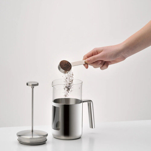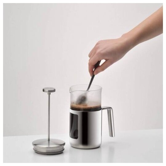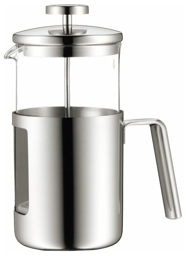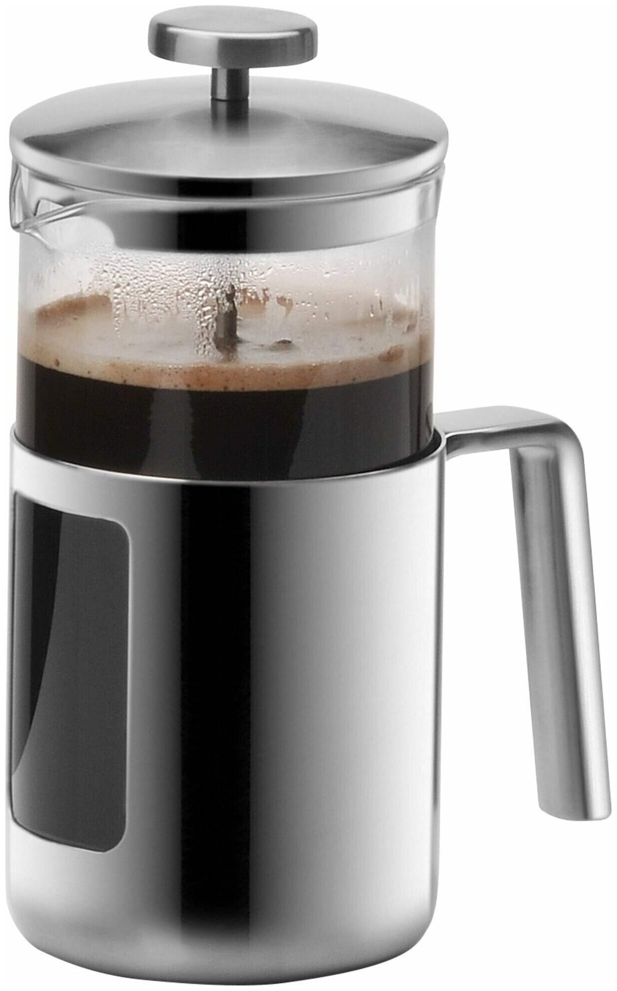 Френч-пресс от WMF для кофе впечатляет своей элегантной формой и высококачественными материалами: нержавеющая сталь Cromargan® 18/10 и термостойкое боросиликатное стекло. Благодаря особой технологии фильтра WMF напиток раскрывает в кофейнике свой насыщенный цвет и аромат. За френч-прессом Kult очень легко ухаживать все детали, кроме сита, можно мыть в посудомоечной машине.