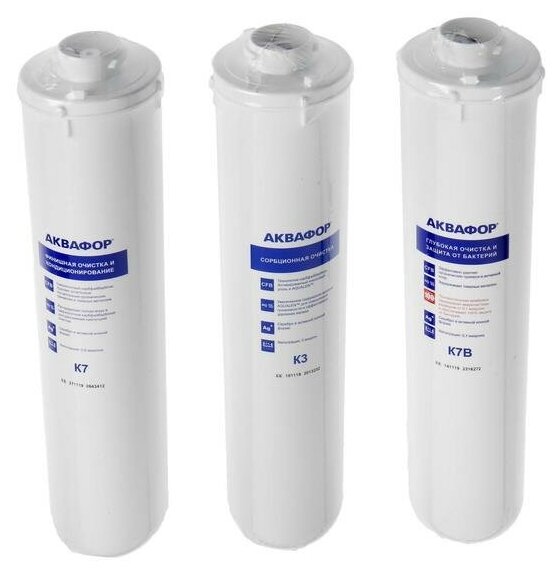 | Комплектация | сменный модуль K3 - 1 шт; сменный модуль K7B - 1 шт; сменный модуль K7 - 1 шт; блок коллекторов - 1 шт; соединительная трубка - 1 шт; соединительная трубка с конической втулкой - 1 шт; узел подключения - 1 шт; кран для чистой воды - 1 шт; заглушка - 1 шт; ключ-вилка - 1 шт |