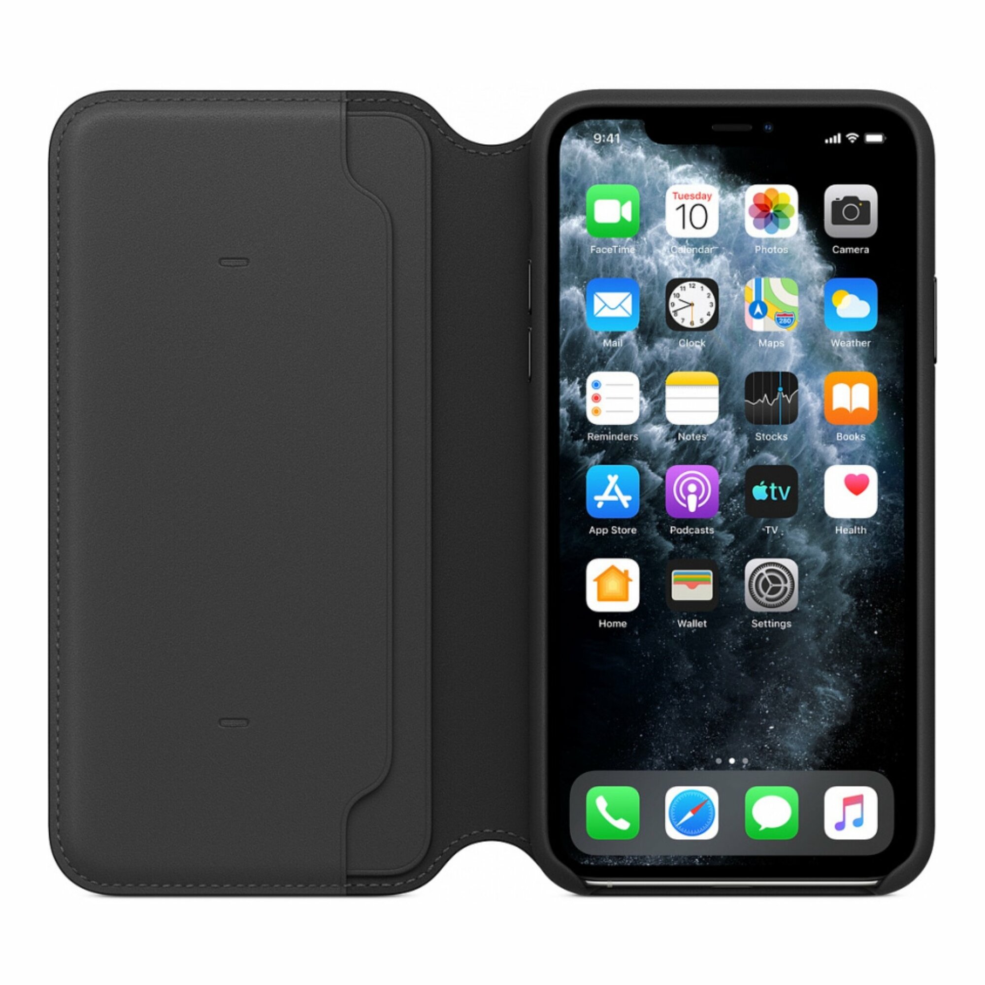 Чехол Folio, изготовленный из специально обработанной кожи европейского производства, приятен на ощупь, роскошно выглядит, точно повторяет контуры iPhone 11 Pro Max и надёжно его защищает. Если закрыть чехол, iPhone 11 Pro Max переключится в режим сна. А если открыть — телефон снова активируется. Мягкая подкладка из микрофибры обеспечивает дополнительную защиту вашего iPhone, а в специальном отделении удобно хранить чеки, купюры и банковские карты. Чехол не придётся снимать даже во время беспроводной зарядки. Как и другие продукты Apple, этот чехол тщательно тестировался в течение нескольких тысяч часов — на всех этапах проектирования и производства. В результате он не только отлично выглядит, но и превосходно защищает iPhone от царапин и повреждений при падении.