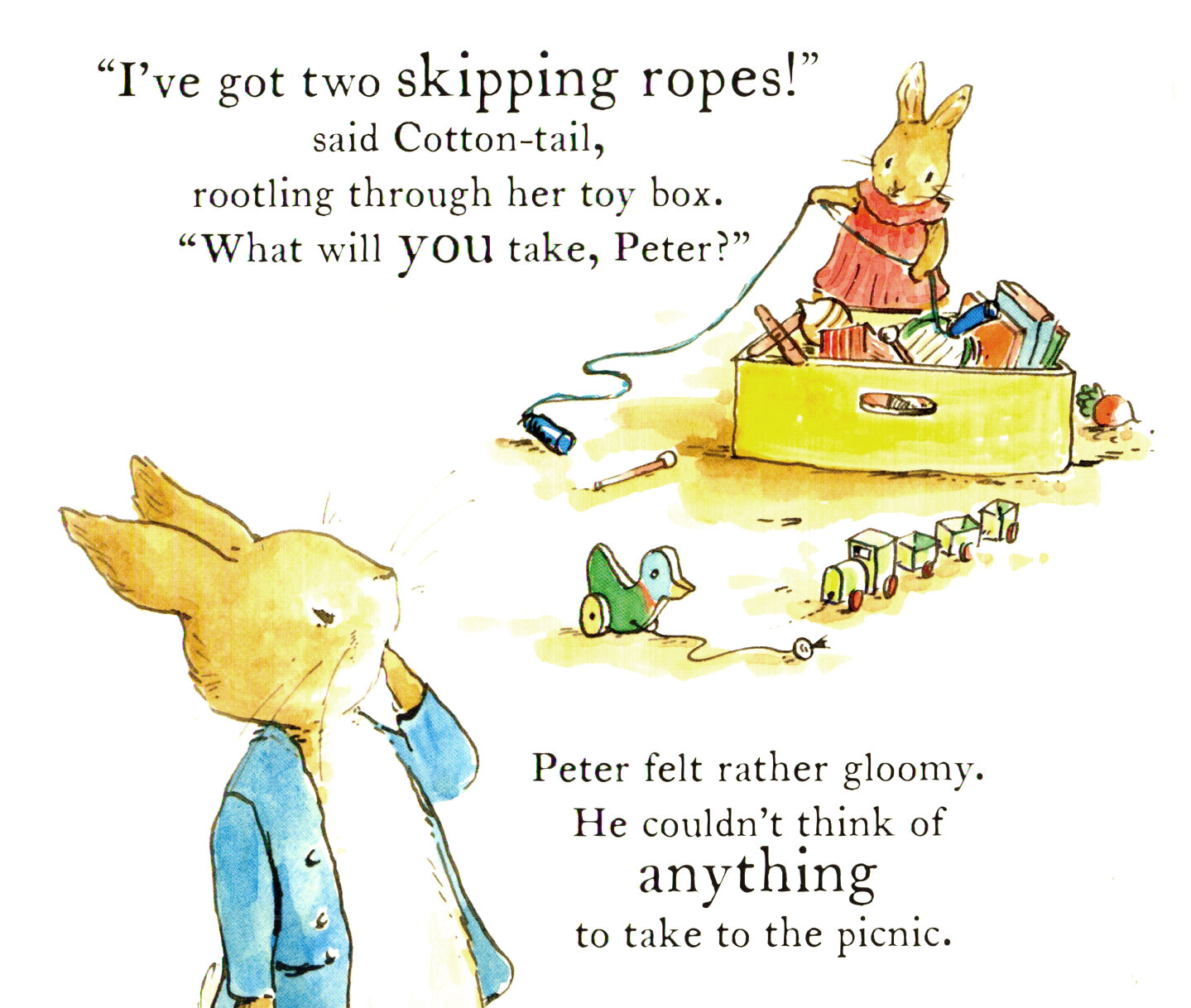 It's springtime and all the animals are preparing to celebrate with a spring picnic! Everyone has to bring something to share with their friends, but there's just one small problem... Peter Rabbit can't think of Anything to bring.