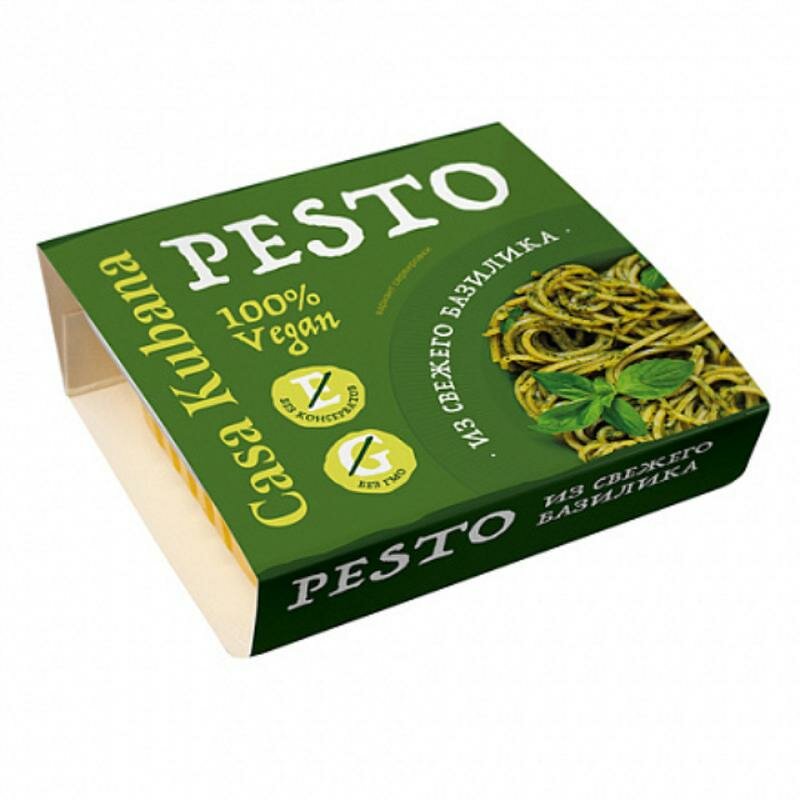| Состав | масло подсолнечное нерафинированное холодного отжима, свежий зеленый базилик, орех кешью, семена тыквы, масло оливковое нерафинированное, кедровый орех, виноградный уксус, морская соль, чеснок сушеный, аскорбиновая кислота (антиокислитель) |