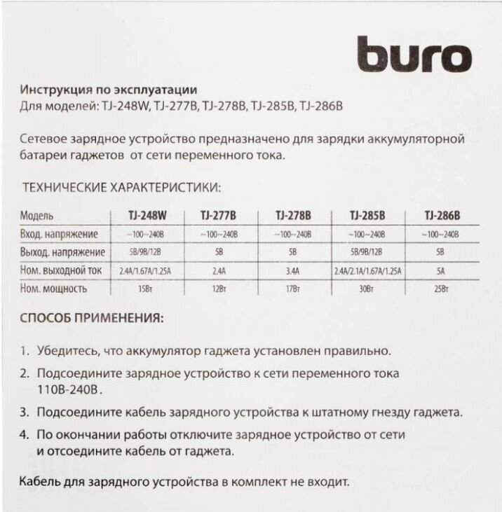 Сетевое зарядное устройство Buro TJ-248W QC 3.0