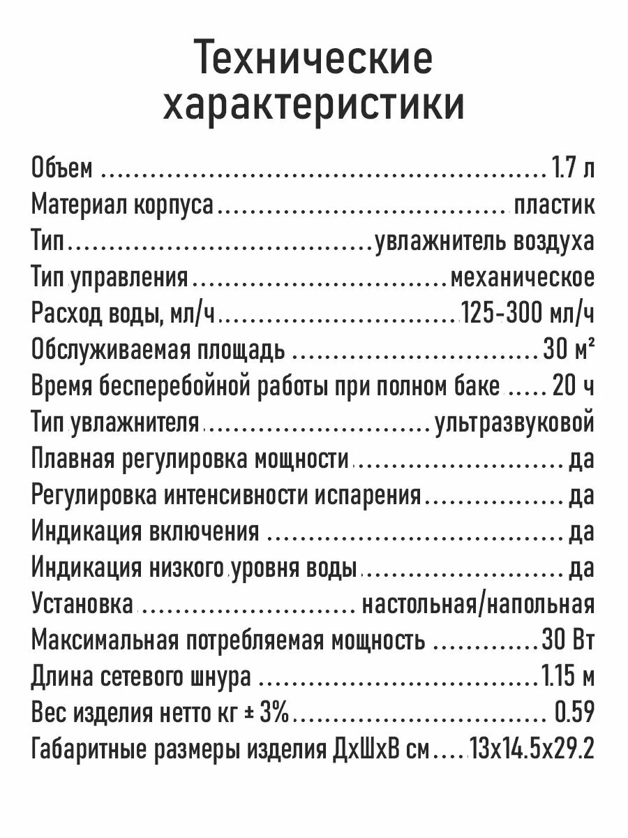 оснащен вместительным 4,5-литровым резервуаром. При максимальной производительности 350 мл/ч, такой объем позволяет поддерживать комфортные условия в помещении на протяжении 36 часов!