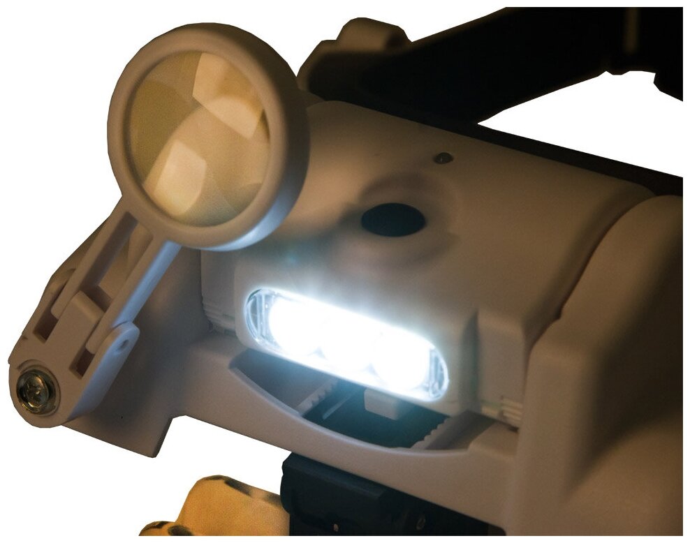 Levenhuk Zeno Vizor HR6 – это лупа с возможностью выбора подходящего увеличения, защитные очки и незаменимый оптический инструмент для выполнения точных работ. Она комплектуется пятью линзами разной кратности, которые можно комбинировать друг с другом произвольным образом. На лупу устанавливается до двух линз одновременно. Дополнительно можно использовать отдельную поворотную линзу для правого глаза. Она дает 8-кратное увеличение. Если нет необходимости в приближении, линзы можно отвернуть в сторону или использовать однократную линзу. Последний вариант позволит превратить лупу в защитные очки для монтажных работ. Levenhuk Zeno Vizor HR6 предоставляет уникальные возможности для управления оптикой. Но внимания заслуживает не только оптика. Подсветка работает от аккумулятора, поэтому батарейки больше не понадобятся. Подзарядить его можно от компьютера или сетевого адаптера. Кабель microUSB–USB уже включен в комплект поставки. Подсветка состоит из трех светодиодов, включается и выключается кнопкой на корпусе, яркость освещения можно регулировать. Levenhuk Zeno Vizor HR6 – отличный выбор для работы с мелкими объектами, ремонта микроэлектроники, изучения часовых механизмов, оценки ювелирных изделий, рукоделия, рисования и монтажных работ. Она не занимает руки и удобна в использовании.