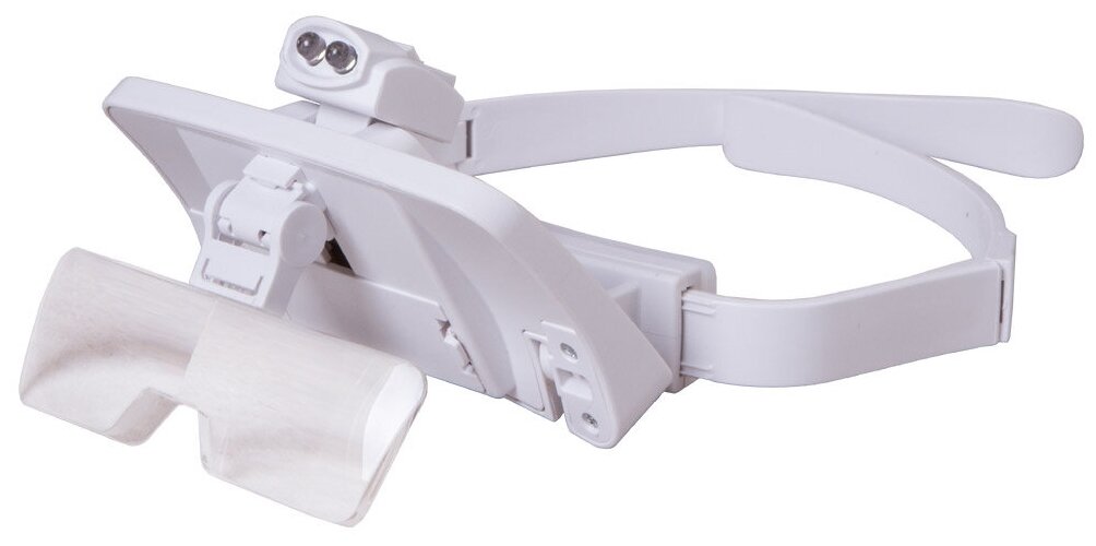 Лупа-очки Levenhuk Zeno Vizor G7 с пятью сменными линзами и встроенной подсветкой незаменима при выполнении монтажных и точных работ. Она прекрасно подходит для ремонта микроэлектроники и часовых механизмов, оценки ювелирных изделий и моделизма, рукоделия и контроля качества на производстве. Levenhuk Zeno Vizor G7 – универсальный оптический инструмент для работы и хобби.Среди сменных линз представлены как линзы с увеличением, так и однократная линза. Последняя превращает лупу в защитные монтажные очки. Надетая лупа не занимает руки, а головное крепление регулируется по длине – все надежно и функционально. В центре лупы, прямо над линзой, расположен блок подсветки. Он состоит из двух ярких светодиодов и батарейного отсека. Батарейки в комплект поставки не входят, но их можно приобрести в любом магазине. Угол наклона подсветки можно корректировать.Еще одна особенность – возможность изменения положения основной линзы. Эта функция удобна в случаях, когда есть необходимость периодически оценивать работу невооруженным глазом. В любой момент линзу можно полностью отвернуть наверх, а после вернуть обратно на исходное место.