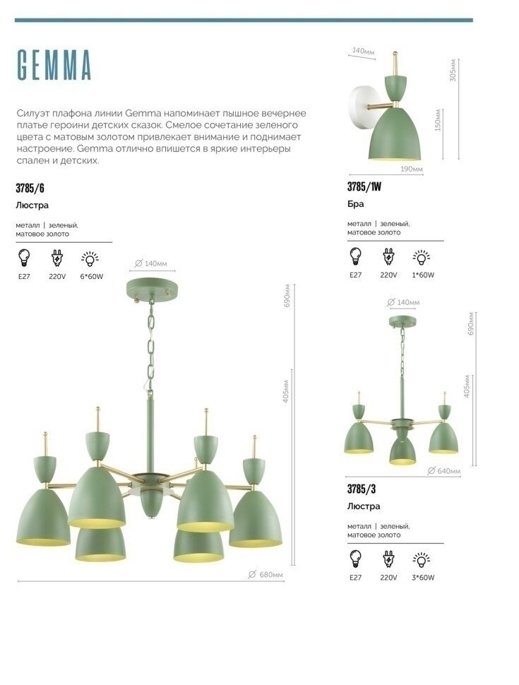 Силуэт плафона серии Gemma напоминает пышное вечернее платье героини детских сказок. Смелое сочетание зеленого цвета с матовым золотом привлекает внимание и поднимает настроение. Gemma отлично впишется в яркие интерьеры спален и детских.