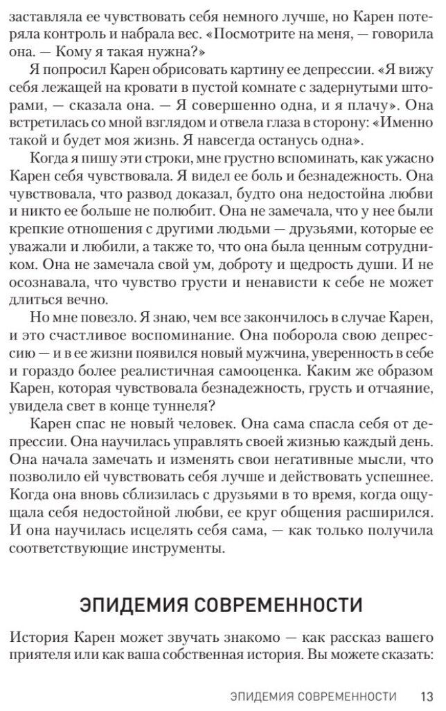 Книга весьма ценная в наше непростое время, когда количество заболевших депрессией стремительно увеличивается.