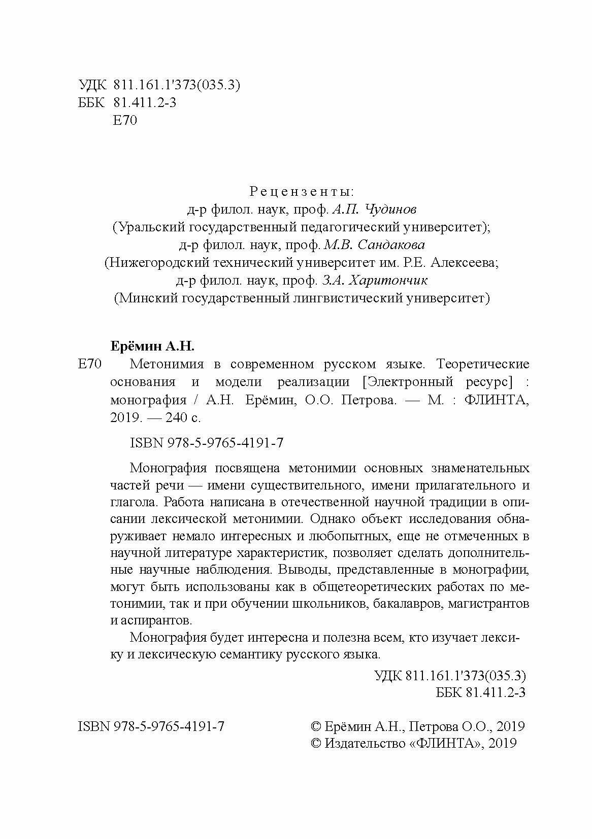 Метонимия в современном русском языке. Теоретические основания и модели реализации (Петрова Оксана Олеговна, Ерёмин Александр Николаевич); Флинта, 2022