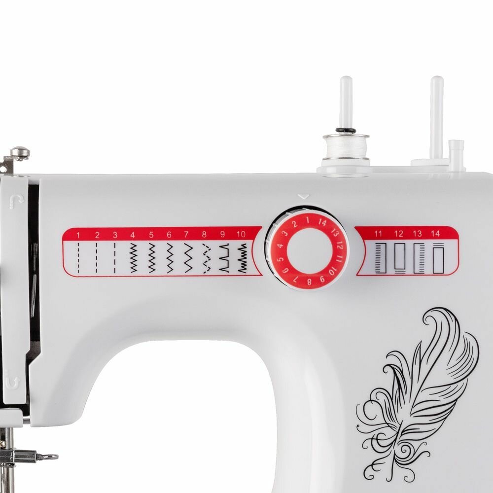 | Прочие особенности и свойства | Особенности и дополнительные функции 14 видов строчки, в том числе обработка петли для пуговицы Автоматическая намотка нити Обработка петель и пришивание пуговиц Регулируемое натяжение нити Встроенная LED-подсветка Прямой и обратный ход при шитье Нитеобрезатель Двойная игла Комплект поставки Шпулька - 4 шт. Иглы - 3 шт. Двойная игла Инструмент для заправки нити Ножной привод Сетевой адаптер питания (6V 1500mA) Катушкодержатель Лапка для обметывания петель Распарыватель Лапка для пришивания молнии |