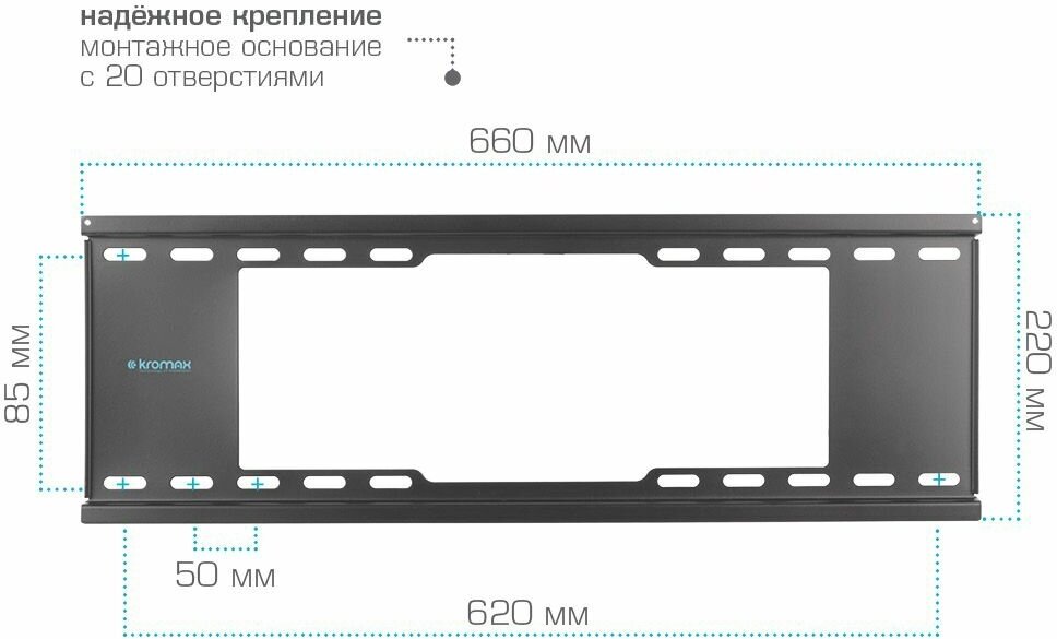 Крепежные отверстия настенного кронштейна для LED/LCD телевизоров Kromax изготовлены по международному универсальному стандарту VESA.