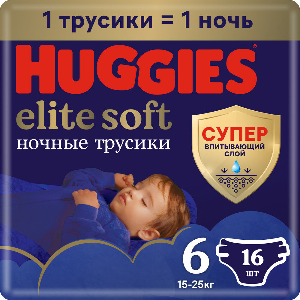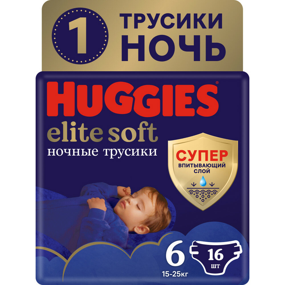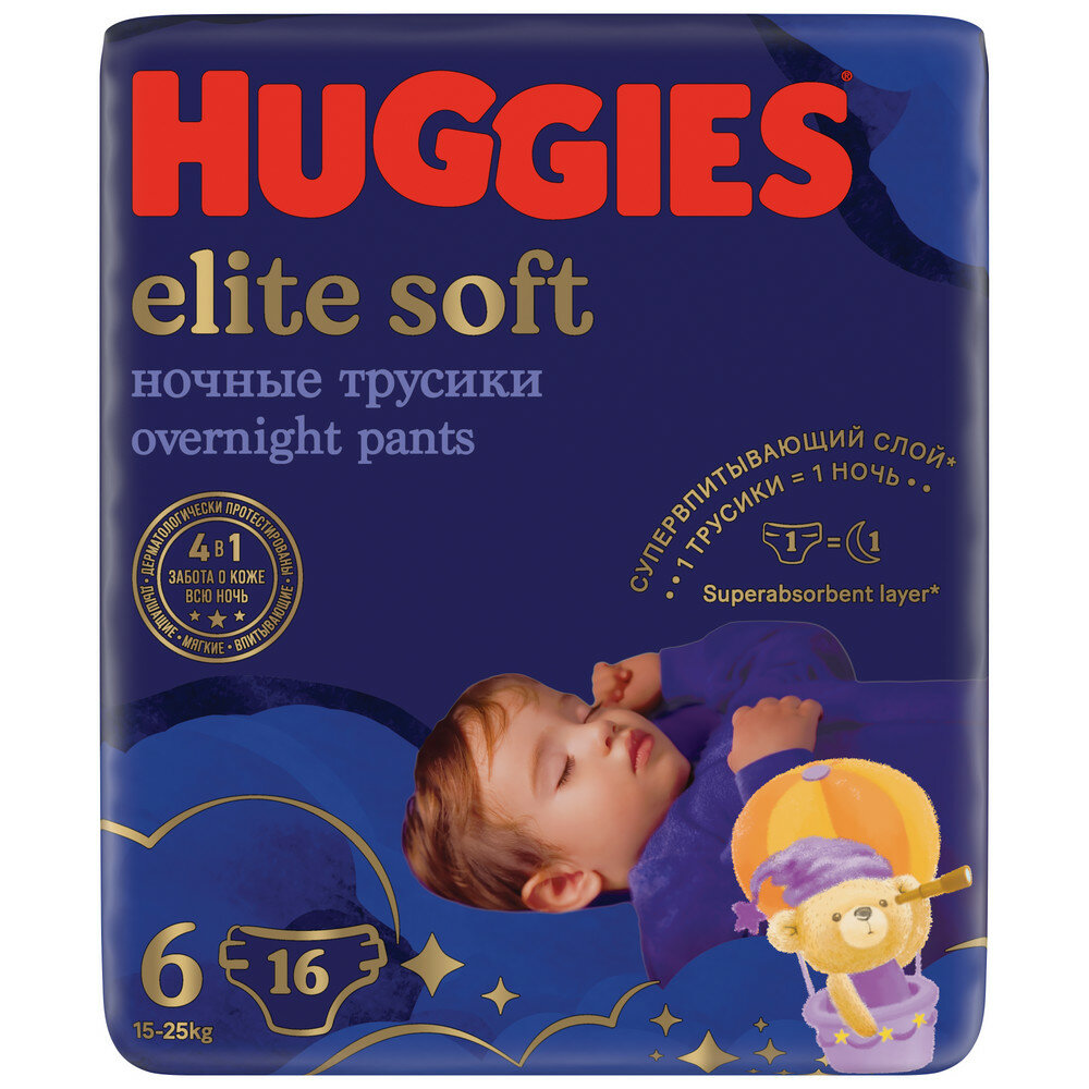Подгузники-трусики Huggies Elite Soft Overnites 6 (15-25 кг) 16 шт.