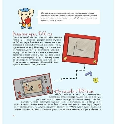 Присоединяйся в путешествие во времени! Эта книга — настоящий телепорт в прошлое, с помощью которого ты отправишься в детство своих родителей, бабушек и прадедушек и даже прапрабабушек! Ты узнаешь историю более 60 игрушек, сможешь посмотреть, кто и в какие игрушки играл раньше, из чего их делали, кто и как их придумал, и к какой эпохе они относятся. Каждая на первый взгляд обыкновенная ёлочная игрушка, оловянный солдатик, кукла, плюшевый мишка, лошадка-качалка и даже набор «Лего» хранят в себе добрые и счастливые воспоминания своих владельцев. Добро пожаловать в волшебный мир игрушек! Для младшего и среднего школьного возраста.