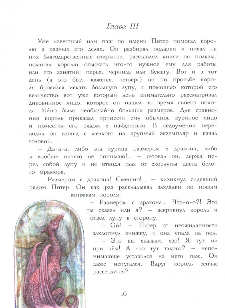 Заказала эту книгу в подарок сыну 8 лет, который читает все про драконов и о драконах. Читал не отрываясь. Какие иллюстрации! Волшебные. Они занимают целые развороты. Я сама историю тоже прочитала. Живой язык, диалоги смешные, забавные - детям читать интересно. Ребенку особенно понравился финал. Сказал, что будет перечитывать, а это о многом говорит:)