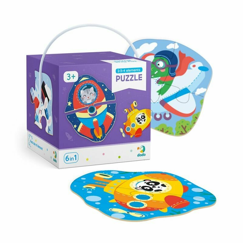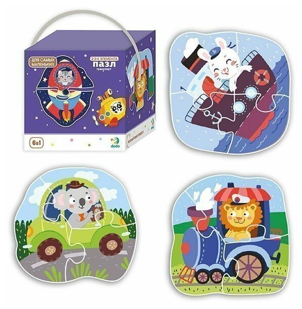 Пазл 2-3-4 элемента «Транспорт» представляет собой фигурные пазлы, которые изображают разные виды транспорта.