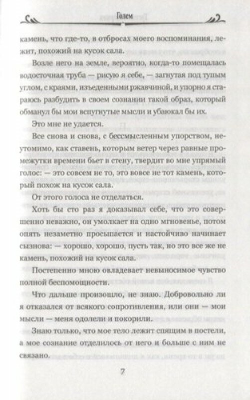 Австрийский писатель Густав Майринк (1868&1932) создал свой самый знаменитый роман под влиянием теософии, оккультизма и спиритизма. О Майринке при жизни даже ходили слухи, что он алхимик. Основа сюжета "Голема" & легенда о раввине, который слепил из глины непонятное чудовище и оживил его при помощи каббалистического заклятия. Страницы этой мистической книги откроют перед читателем средневековый дух пражских улиц и таинственные пентограммы, сны, переходящие в реальность, и встречу с загадочным Големом…