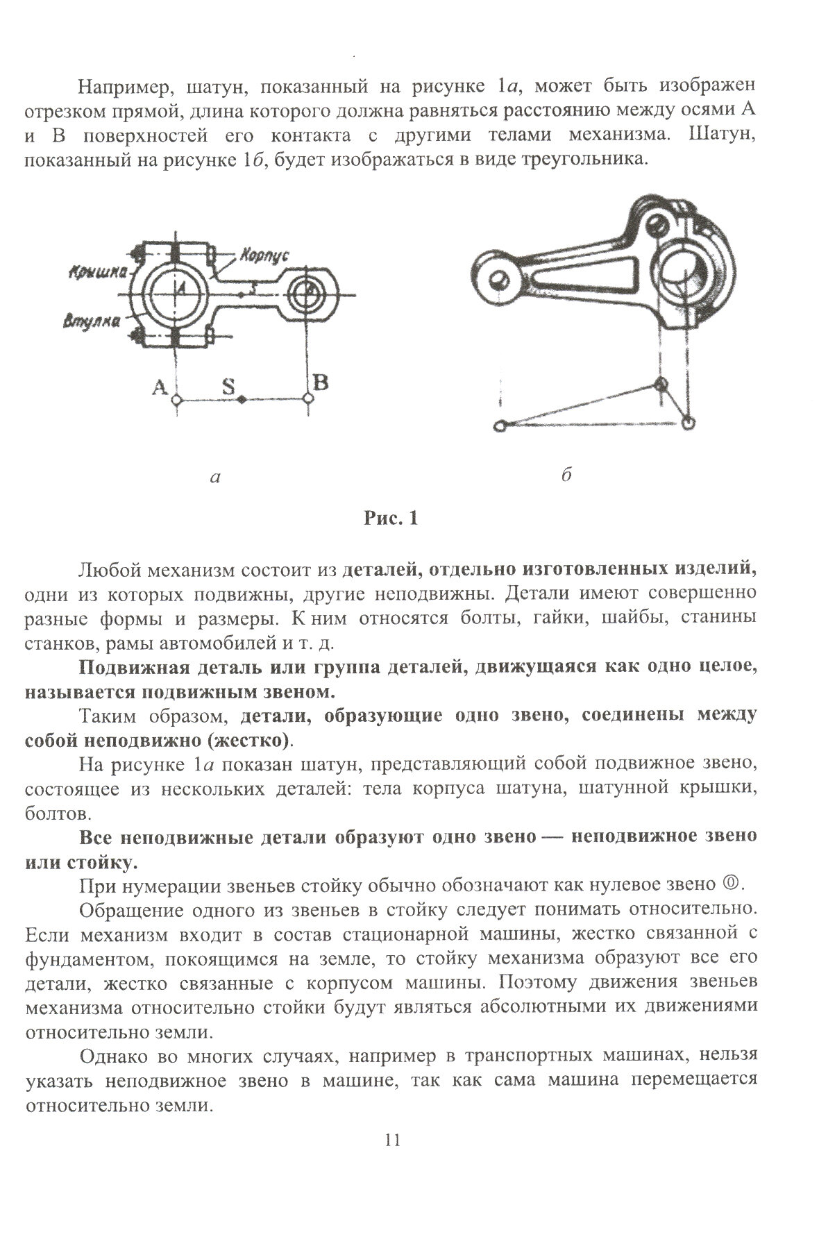 В учебном пособии изложены основы строения механизмов: описаны модели тел, образующих механизмы; разобраны модели подвижных соединений тел в механизмах, позволяющие однозначно описать характер относительного движения тел и усилия, передаваемые через эти соединения; приведены методики построения эквивалентных связей для параллельно и последовательно расположенных связей в механизме; разобраны методики построения графа связей (графа структуры) и кинематической схемы механизма, позволяющей изучить движения всех его тел и определить реакции связей в механизме; изложены вопросы, связанные со степенью подвижности механизма и наличием в нем избыточных связей; изложена методика структурного синтеза плоских механизмов с заданной степенью подвижности с использованием понятия "структурная группа".