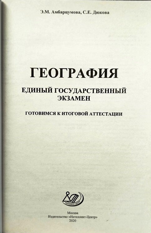 ЕГЭ-2020. География. Готовимся к итоговой аттестации (Амбарцумова Элеонора Мкртычевна; Дюкова Светлана Евгеньевна); Интеллект-Центр, 2020