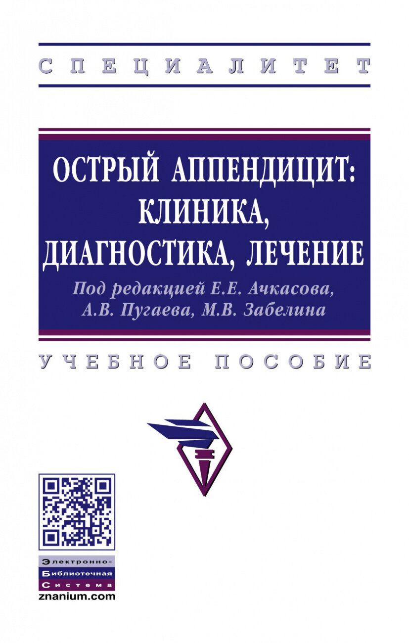 Острый аппендицит. Клиника диагностика лечение. Учебное пособие (Ачкасов Евгений Евгеньевич, Ярославская Мария Александровна, Пугаев Андрей Владимирович, Забелин Максим Васильевич, Посудневский Владислав Иванович); Инфра-М, 2020