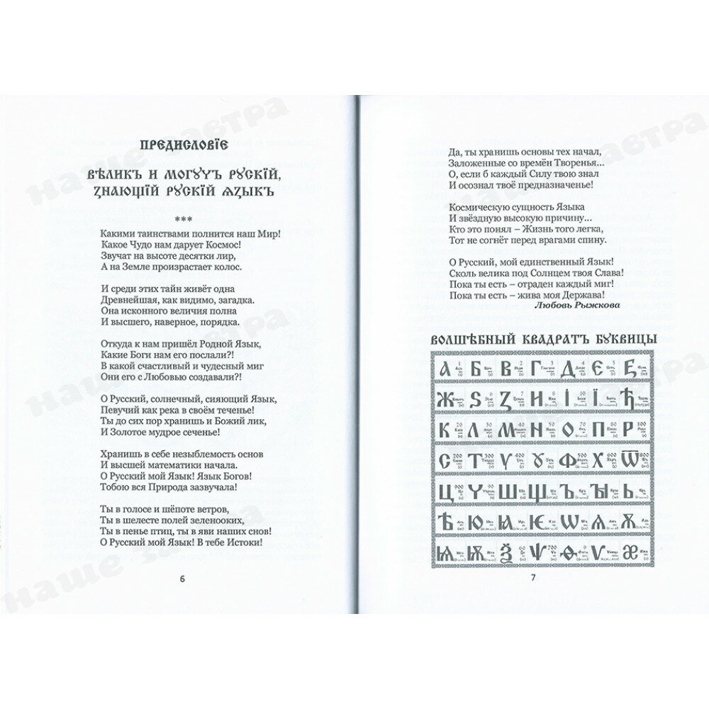 Книга делает акцент на возвращении Образности языка и возвращении утерянных букв и их образов. В чем я совершенно согласен.