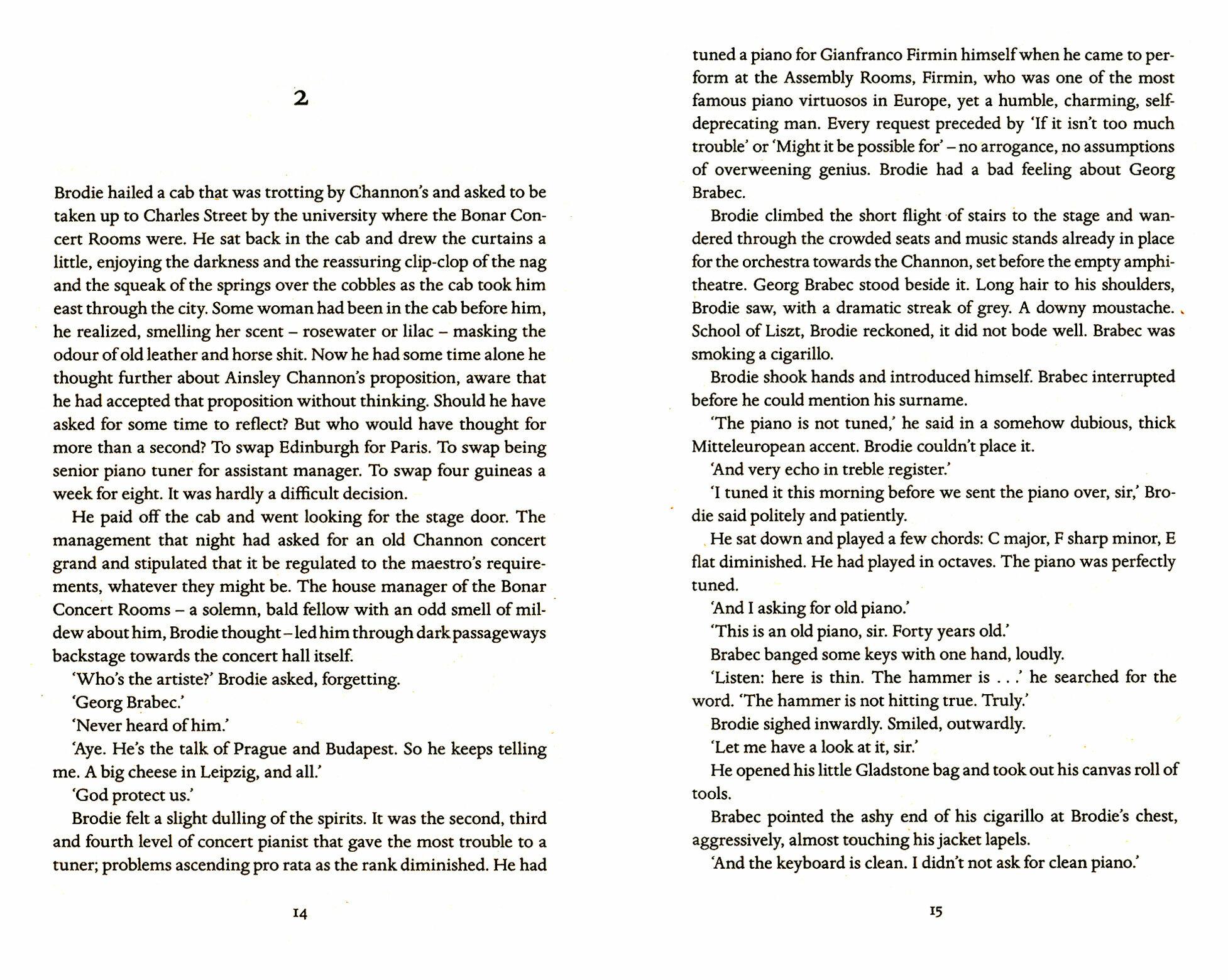 When Brodie is offered a job in Paris, he seizes the chance to flee Edinburgh and his tyrannical clergyman father, and begin a wildly different new chapter in his life. In Paris, a fateful encounter with a famous pianist irrevocably changes his future - and sparks an obsessive love affair with a beautiful Russian soprano, Lika Blum. Moving from Paris to St Petersburg to Edinburgh and back again, Brodie's love for Lika and its dangerous consequences pursue him around Europe and beyond, during an era of overwhelming change as the nineteenth century becomes the twentieth.