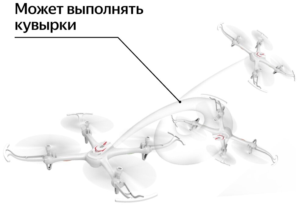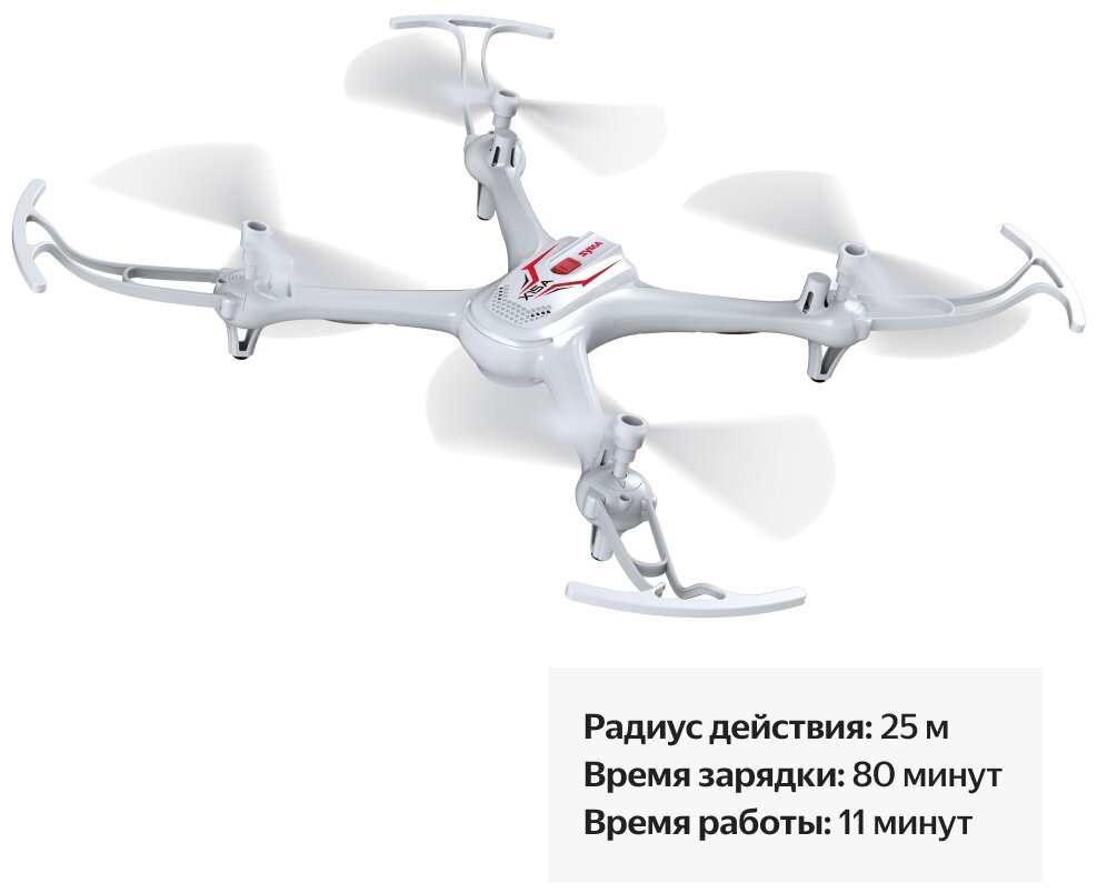 Беспилотный летательный детский аппарат, квадрокоптер SYMA . Особенности дрона: 4-моторная конструкция обеспечивает высокую скорость, хорошую маневренность и позволяет летать как внутри помещений, так и на улице. 6-осевая система стабилизации с встроенным гироскопом обеспечивает точное позиционирование во время полета. Модульная конструкция облегчает сборку, ремонт и техническое обслуживание. 3D режим позволяет делать перевороты на 360 градусов. Интуитивный режим Headless облегчает пилотирование. Встроенный бародатчик гарантирует удержание высоты полета. Автоматический взлет и посадка. Для тех кто научился основам управления квадрокоптера и хочет попробовать более сложные элементы полета, способен выполнять автоматические эффектные перевороты на 360° (флипы). Также имеется функция функция взлета и посадки при помощи одной клавиши. Как многие квадрокоптеры, Syma имеет режим headless. Время зарядки аккумулятора не более 80 минут. Время полета примерно 11 минут. Независимо от положения квадрокоптера в пространстве, относительно вас его положение в пространстве будет оставаться прежним. Простой и понятный пульт дистанционного управления с частотой 2.4GHz обеспечивает дальность полета до 25 метров.
