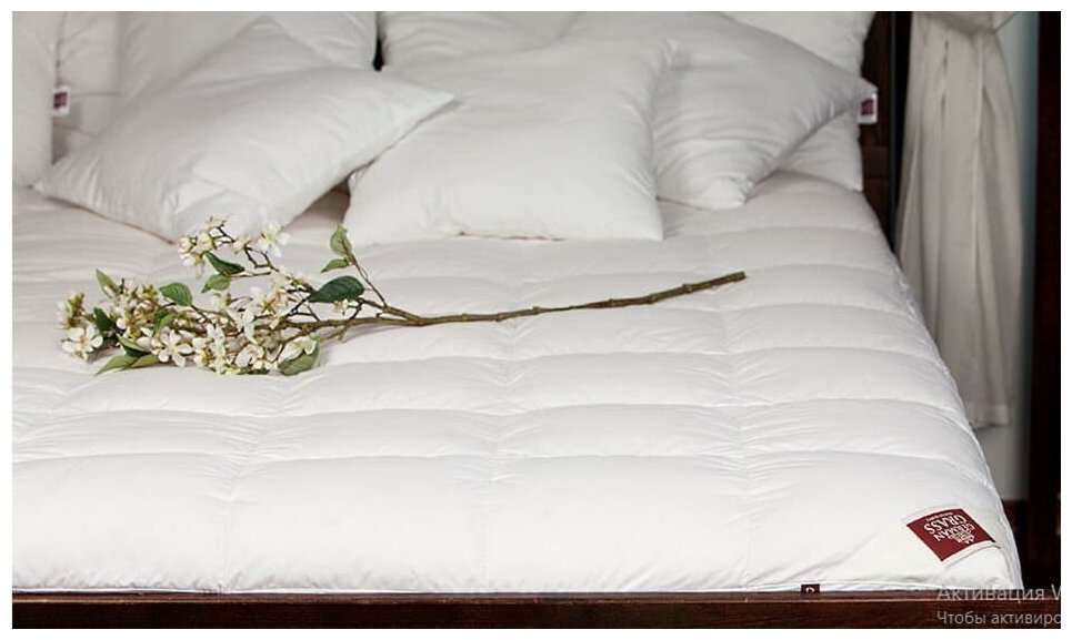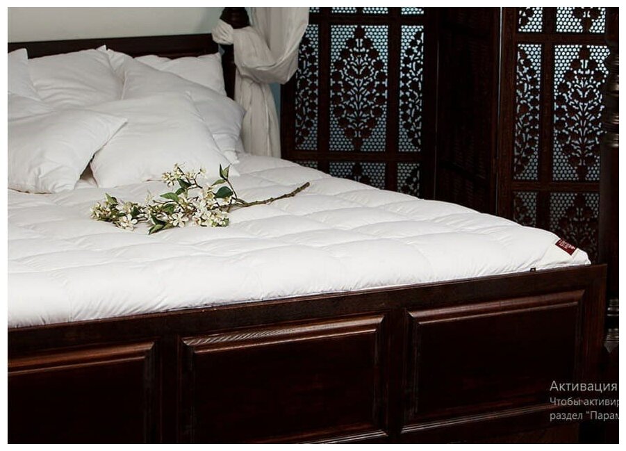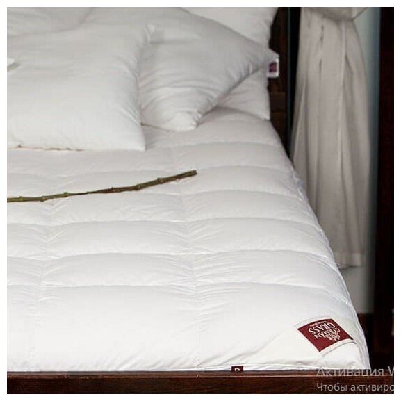 Дышащий пуховый наполнитель обеспечивает оптимальный микроклимат постели. Для надежной фиксации предусмотрены широкие бортики с резинкой по периметру изделия.
