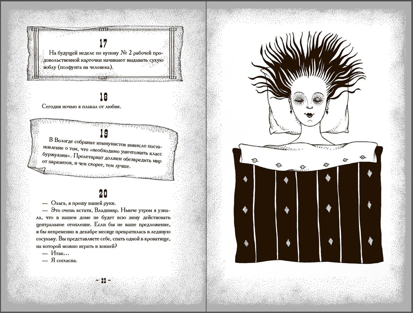 Казалось бы, ярчайшее и самодостаточное произведение Мариенгофа не нуждается ни в каком дополнении. "Циники" сами по себе наполнены уникальными образами. Тем не менее, иллюстрации Ольги Малиновской стали неожиданной "вишенкой на торте", сделав текст ещё ярче, ещё пронзительнее. Оформлении книги выдержано в советской стилистике, изобразительный ряд многогранен и не лишен метафор. Неожиданно круто.