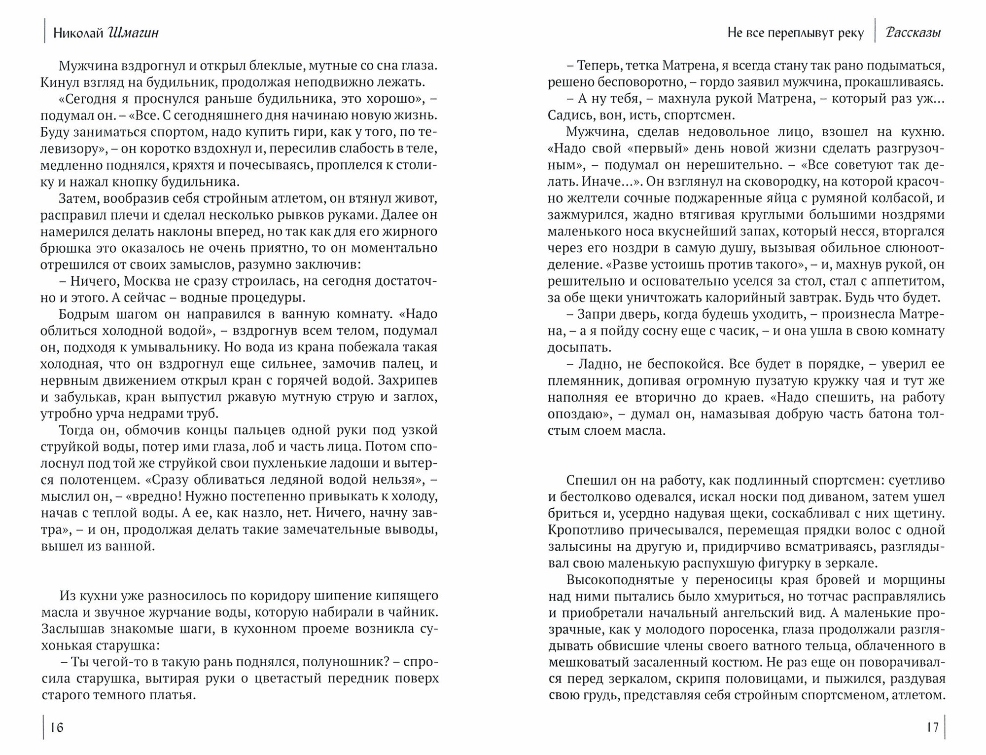 Герои Николая Шмагина - простые люди, с их слабостями и пороками: они работают, живут, как могут, наивны и доверчивы, им не всегда везет в жизни. Не оцененные по достоинству, они спиваются и умирают раньше срока, уготованного им судьбой. Это самородки, которые умеют мечтать, любить, талантливы по-своему, добродетельны, не без юмора.