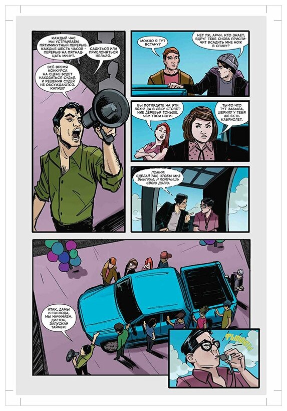 Компания отца Реджи Мэнтла предлагает всем желающим выиграть машину, и буквально каждый хочет сорвать куш. Неожиданная вспышка инфекционного мононуклеоза препятствует школьной постановке "Сурового испытания"! У Реджи появляется тайна, о которой известно только Арчи… но вдруг Реджи знает больше, чем рассказывает? А ещё нам предстоит посетить