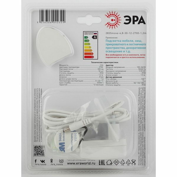 | Особенности | датчик движения, самоклеющаяся, регулировка яркости |