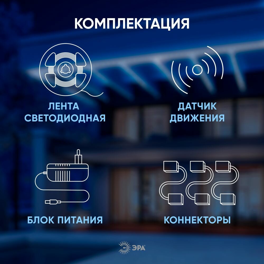Комплект одноцветной светодиодной ленты с датчиком движения и функцией регулировки яркости. Датчик срабатывает только в условиях низкой освещенности. Идеально подходит для подсветки лестничных и прикроватных пространтств, проходных помещений.