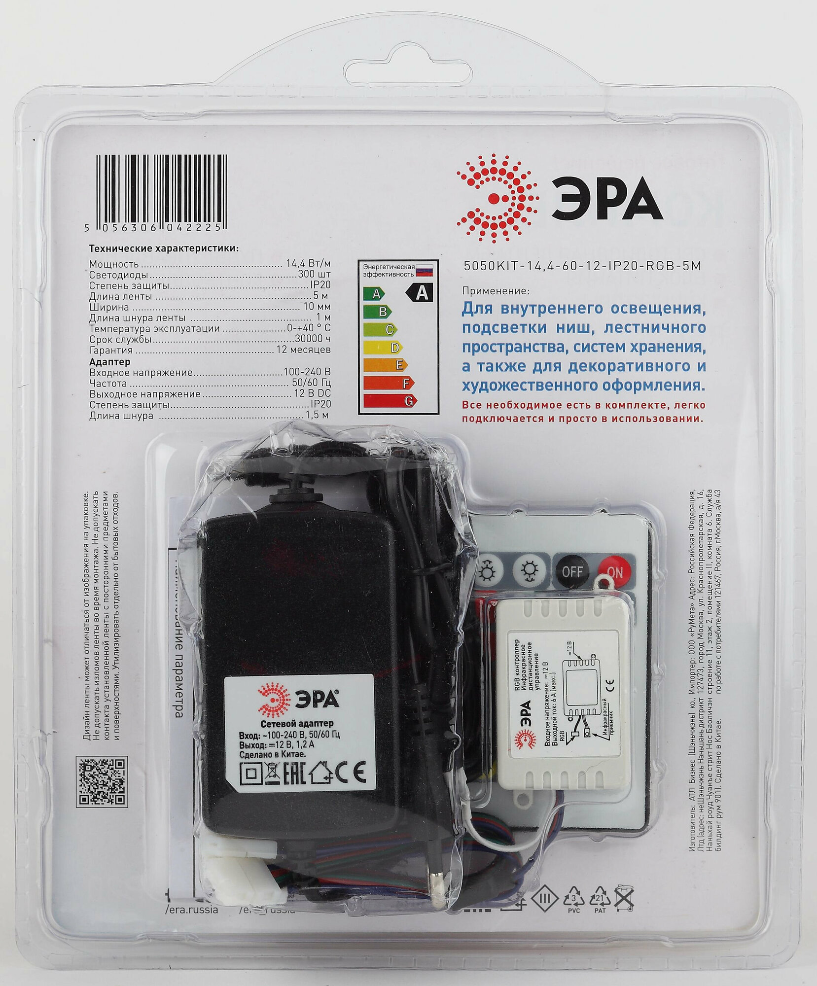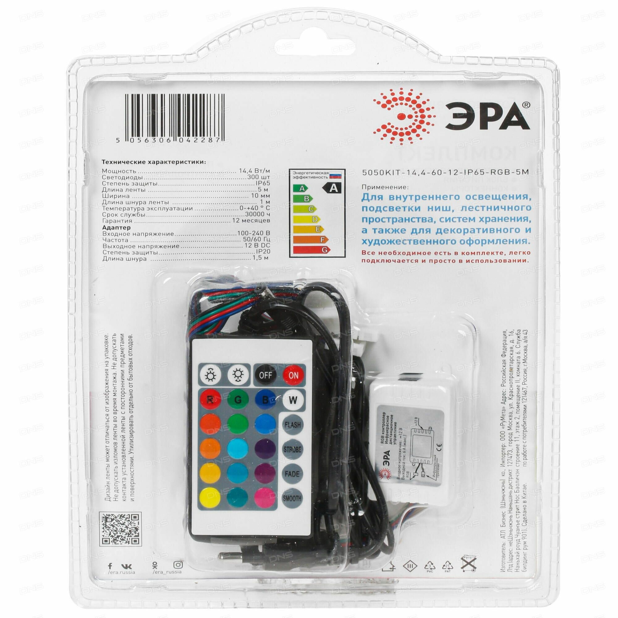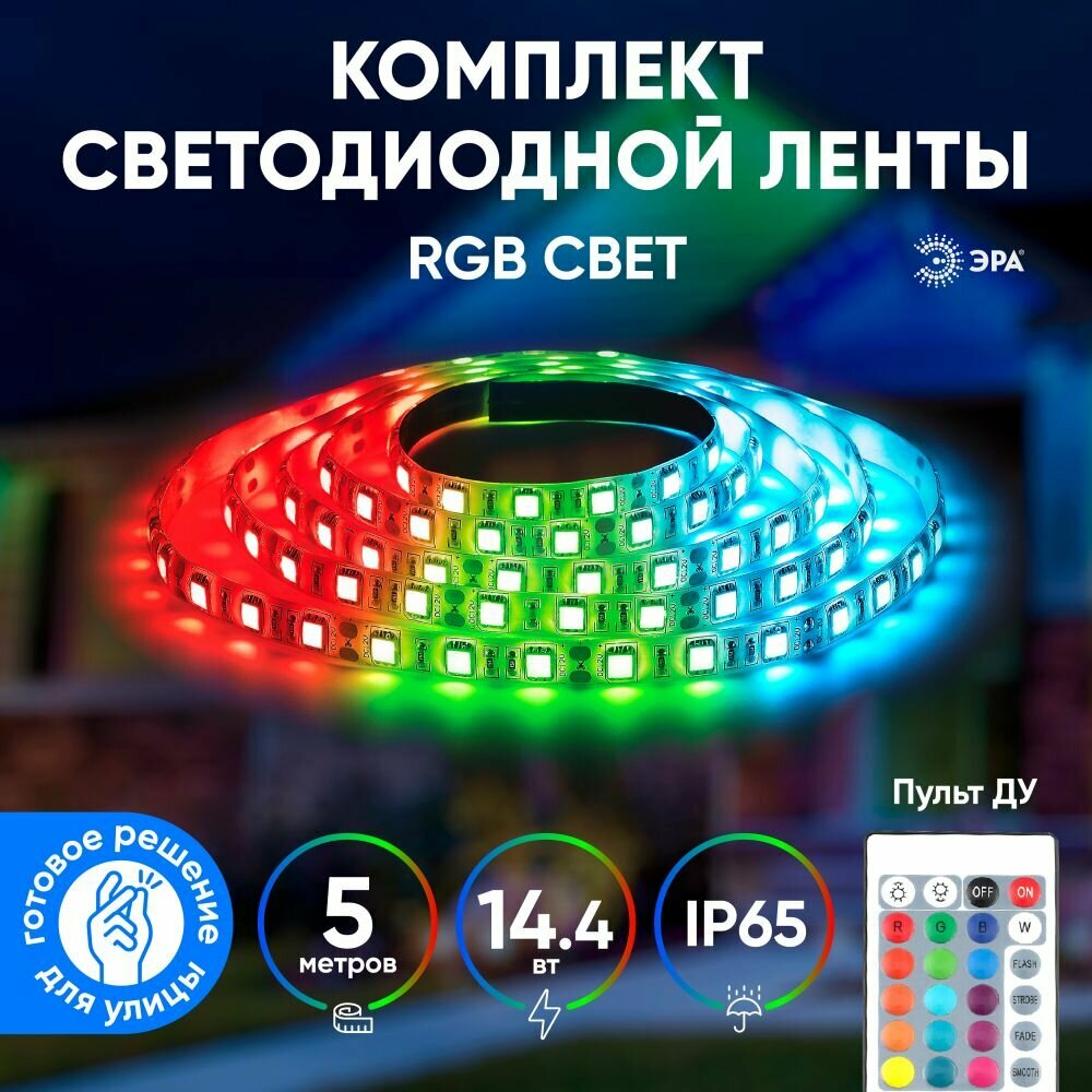 Эра Б0043067 Комплект многоцветной (RGB) светодиодной ленты 5050kit-14,4-60-12-IP20-RGB-5m