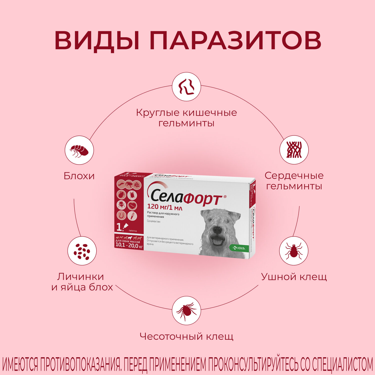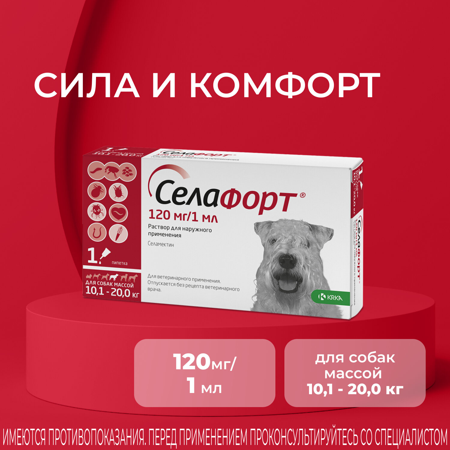 Р-р для наружного применения для собак KRKA Селафорт весом 10,1-20,0 кг, 1 мл (120 мг), шт